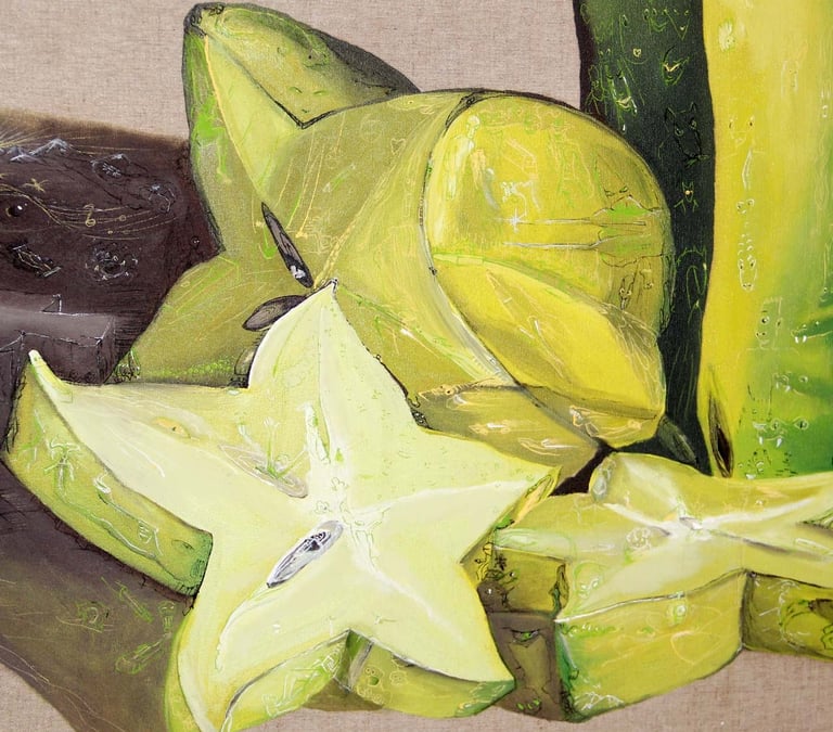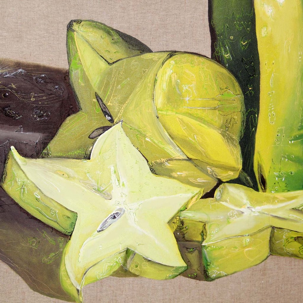 Fruits exotiques, paysages, textures, corps, portraits ; des sujets du réel traités sans naturalisme imposé. L'intention est de trouver ce que chaque forme a d'étrange ou d'inattendu quand on la regarde avec attention.