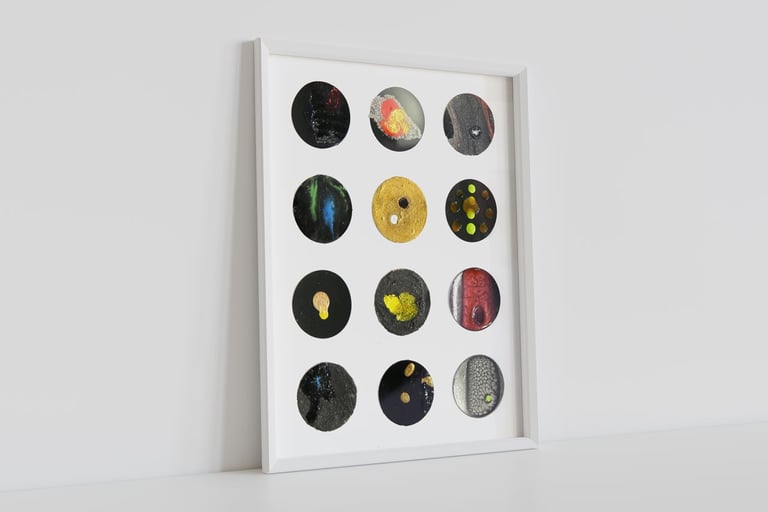 Chaque rond est un terrain d'expérimentation — matières, couches et réactions observées comme sous microscope, avec des résultats proches d'une étude scientifique.